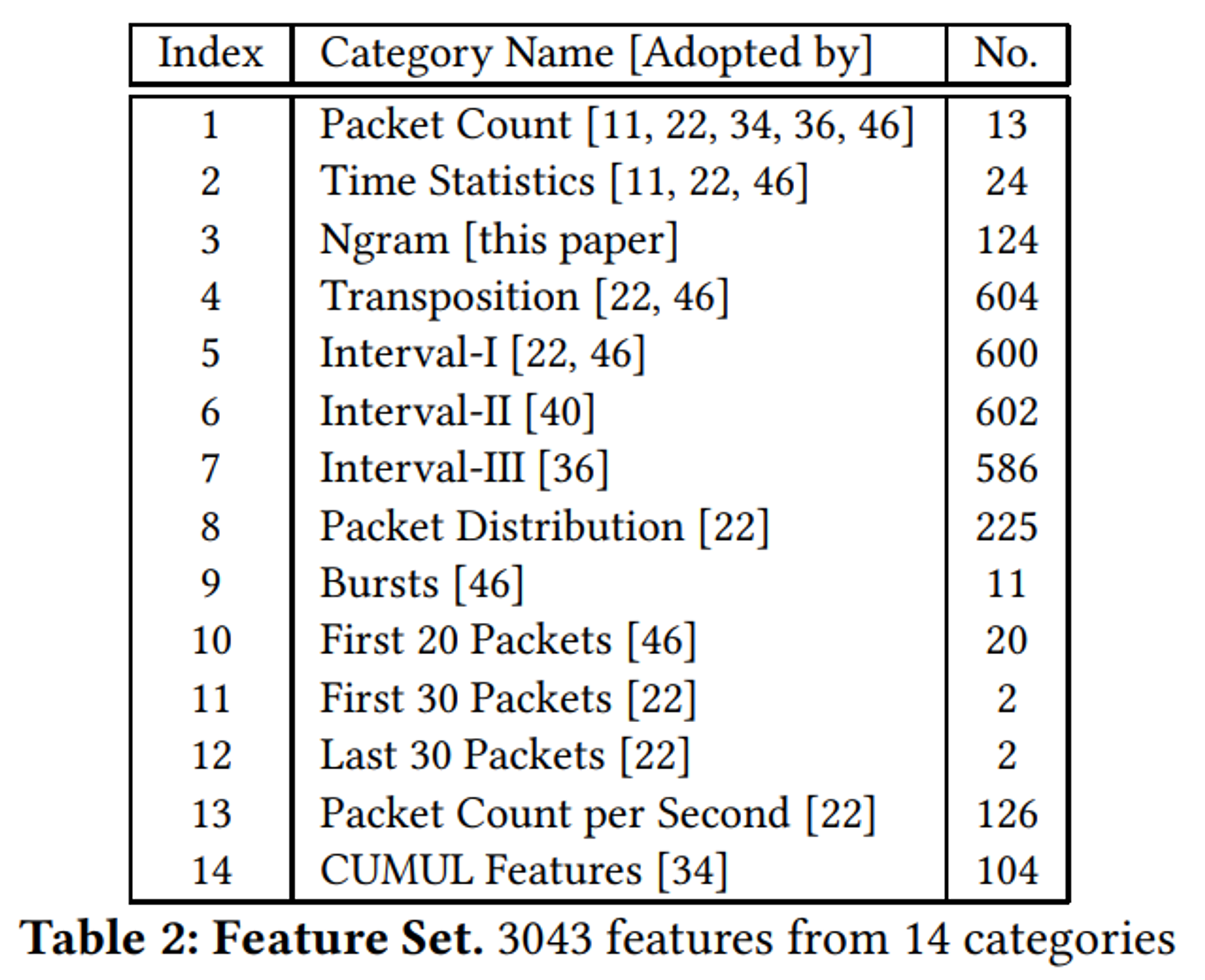 - *categories → Time, Ngram, Transposition, Interval, packet dist, …, CUMUL…