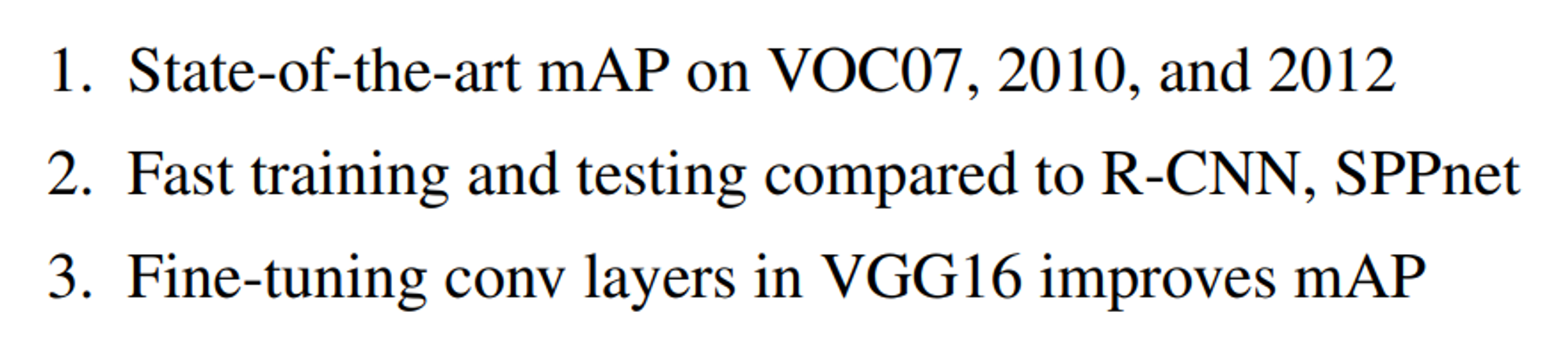 - mAP SOTA 달성 (R-CNN, SPPnet보다 우수한 성능)