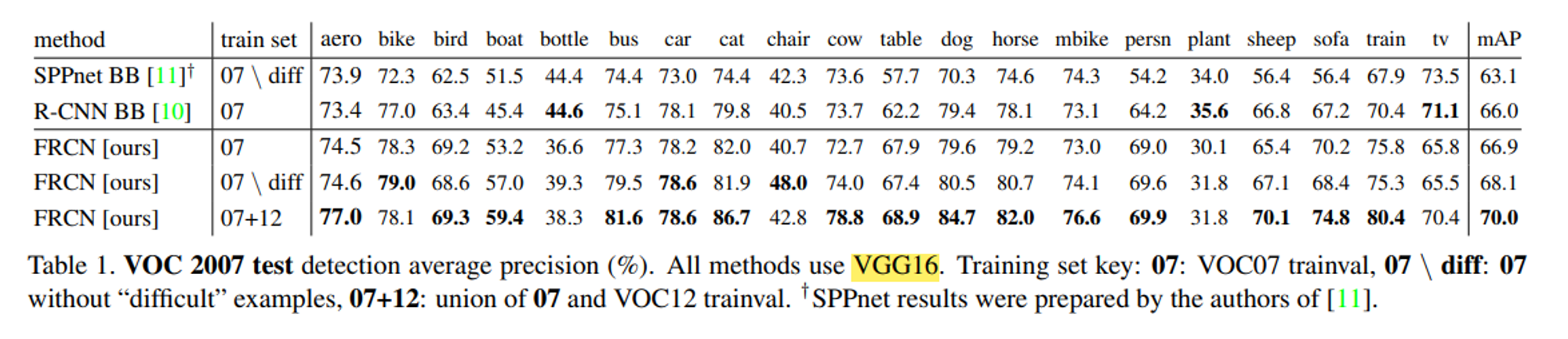 이 경우 SPPnet, R-CNN을 FRCN과 비교하기위함이고