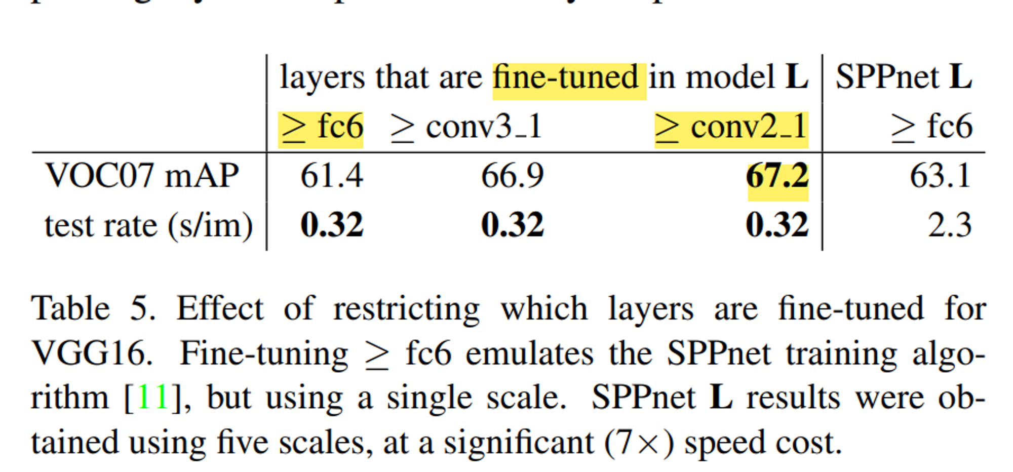 - 아래 layer 전을 다 freeze하고 실험했을때 RoI pooling layer도함께 fine-tuning할경우에 성능이 더 좋았다.