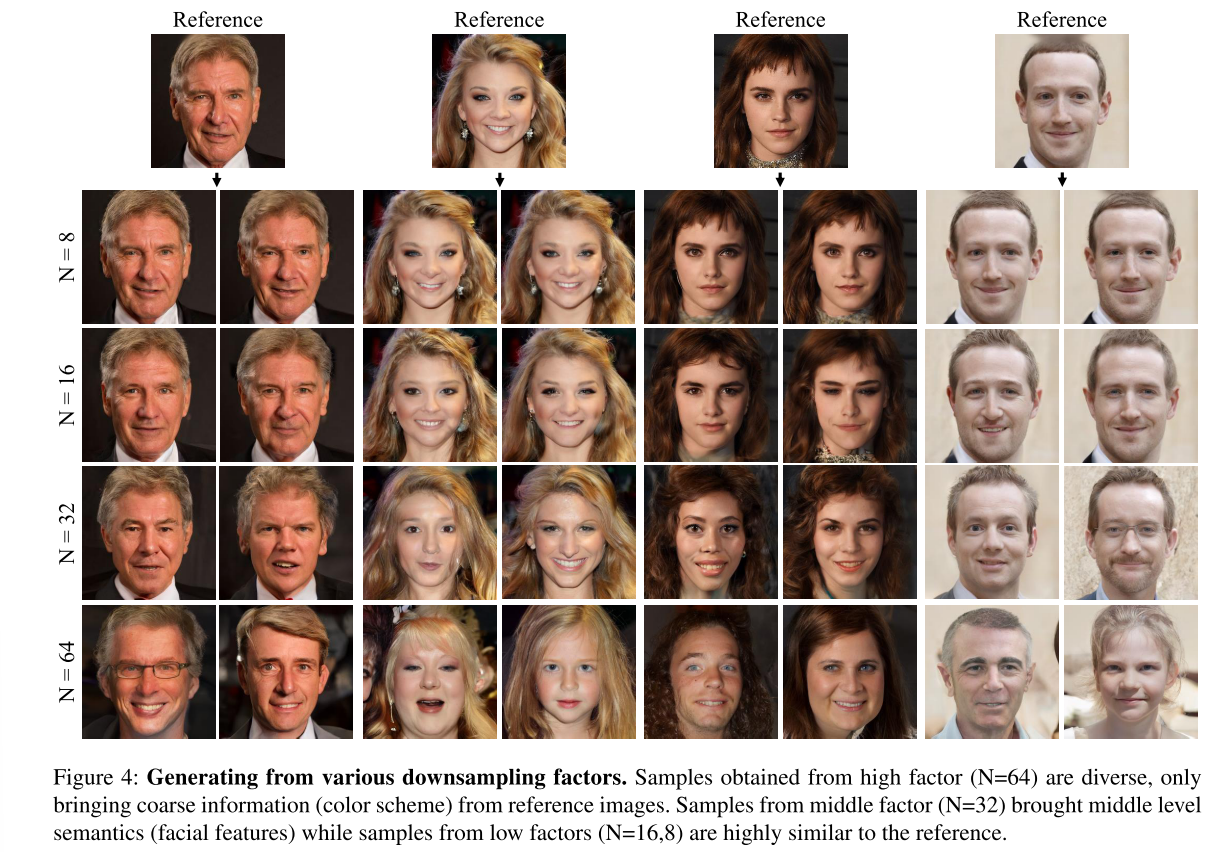 ⇒ 즉 Downsampling factors를 통해서 reference image와 생성할 이미지의 perceptual similarity를 조절할 수 있다.