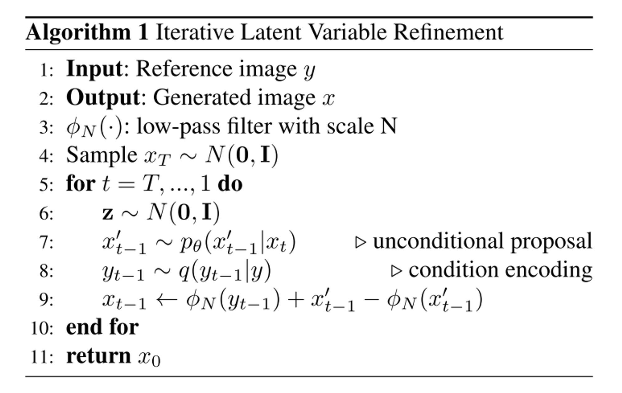 - DDPM을 이용해 x_t로부터 unconditional proposal distribution x_t-1’을 구한다.