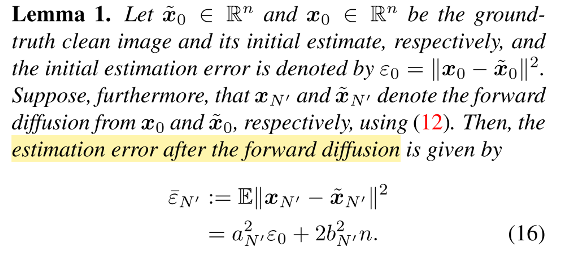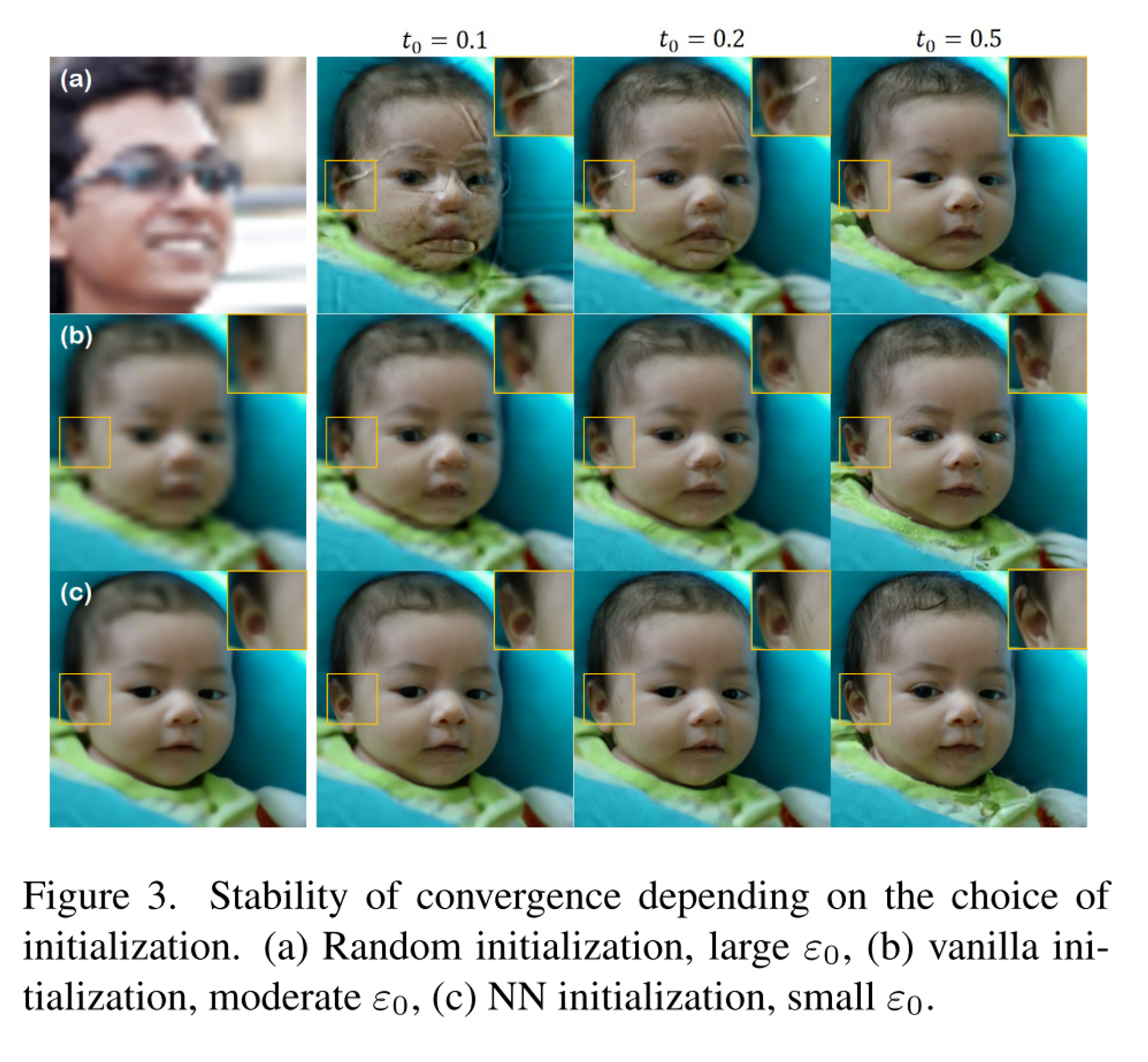- ε0 : x0와 x0 tilde의 차이가 작을수록(GT clean image, initial estimate) reverse diffusion의 수렴이 같은 지점에 더 안정적으로 이루어짐.