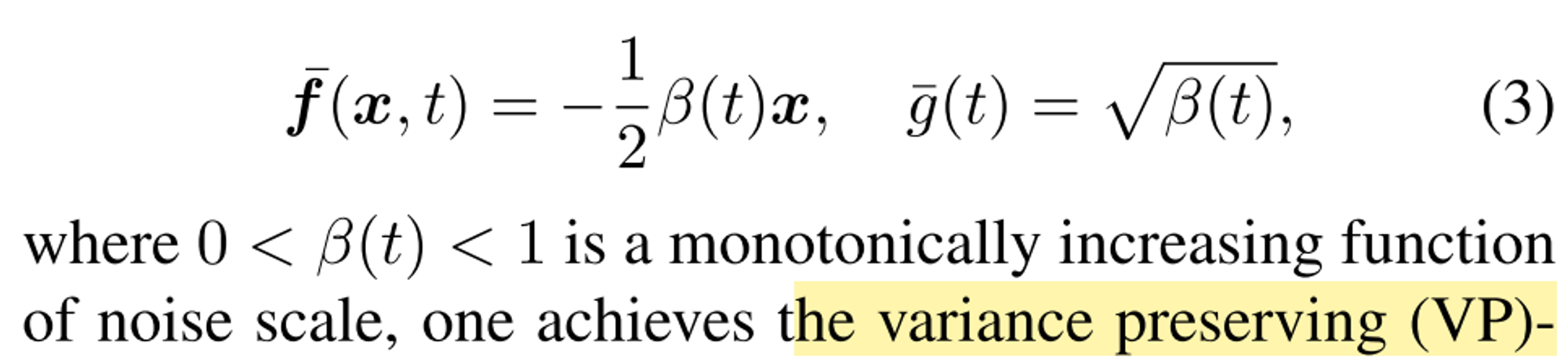 f_bar와 g_bar를 무엇으로 선택하느냐에 따라서 VP-SDE나 VE-SDE를 사용할 수 있다.
