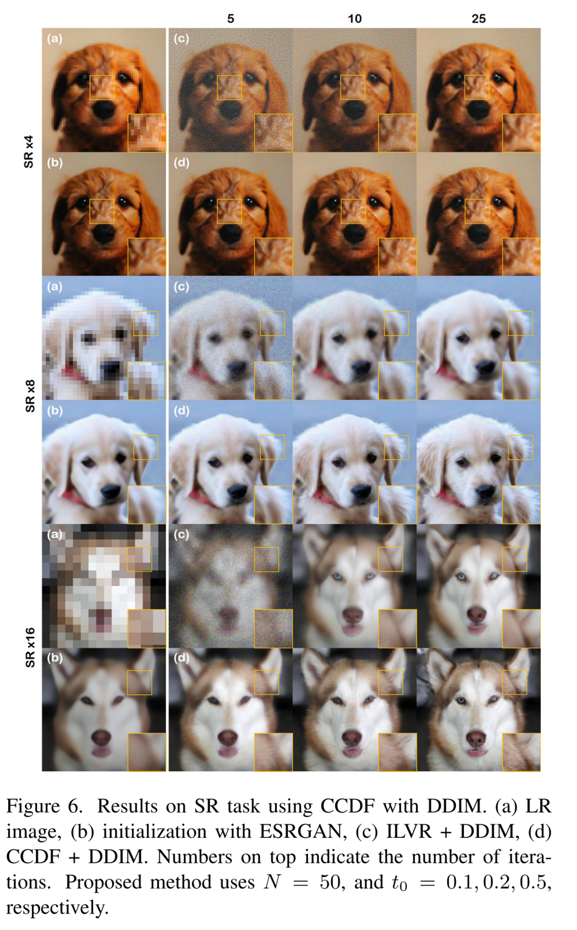 DDIM과도 Incorporate해서 사용가능한데, 그 결과 5 steps만큼 적은 iterations로도 좋은 퀄리티를 보였다.(N’ = t0N = 5일때도 좋은 성능)