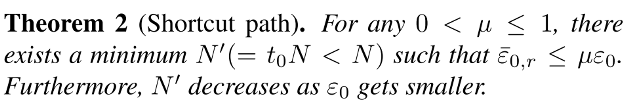 만약 initialization을 잘해서 \tilde{x}0를 x_0와 비슷한 수준으로 estimate하면 \epsilon_0가 더 작아지고 즉 \bar{\epsilon}{0, r} 에 대한 bound가 더 tight해지기 때문에 더 빠르게 수렴이 가능하다. (N’이 더 작아진다 / reverse 시작지점을 더 빨리 끌어당길 수 있다)