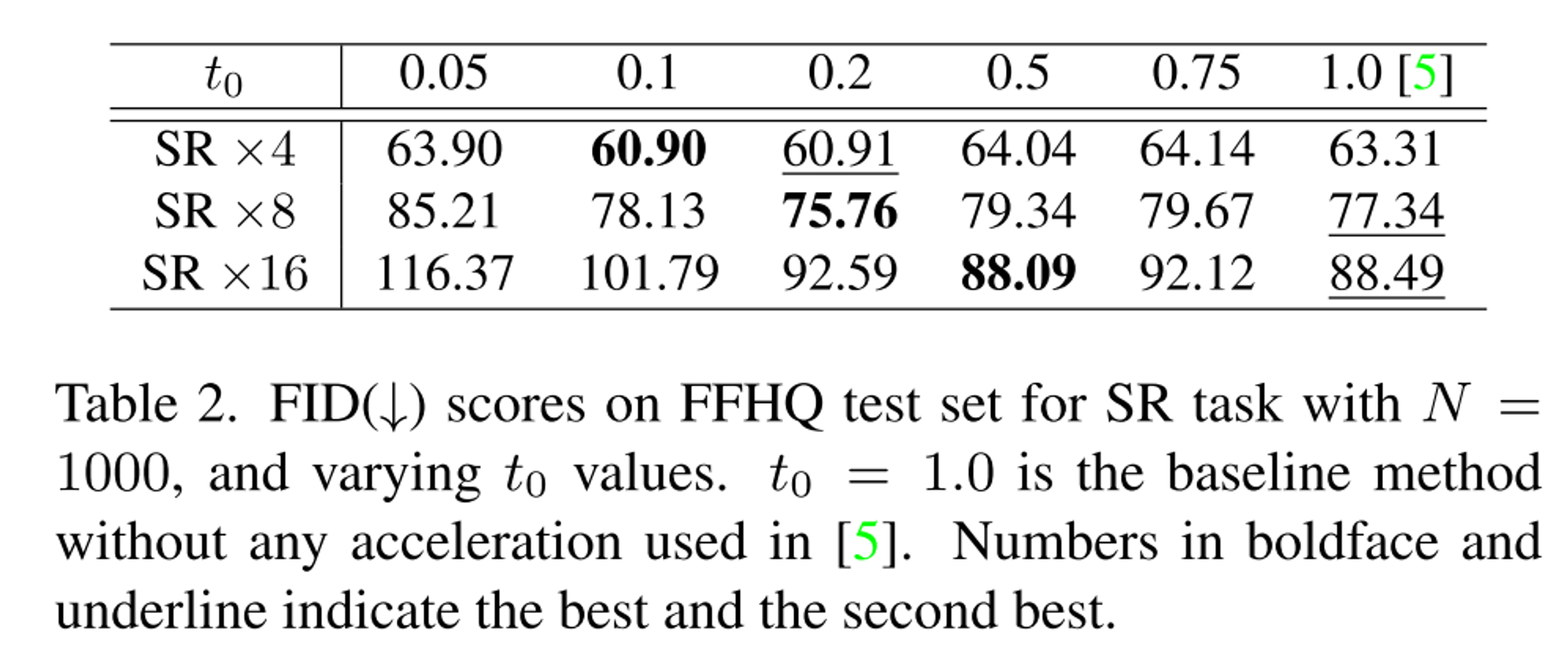 t_0를 줄여가면서 측정 (t_0 : reverse diffusion이 시작되는 time (< T))