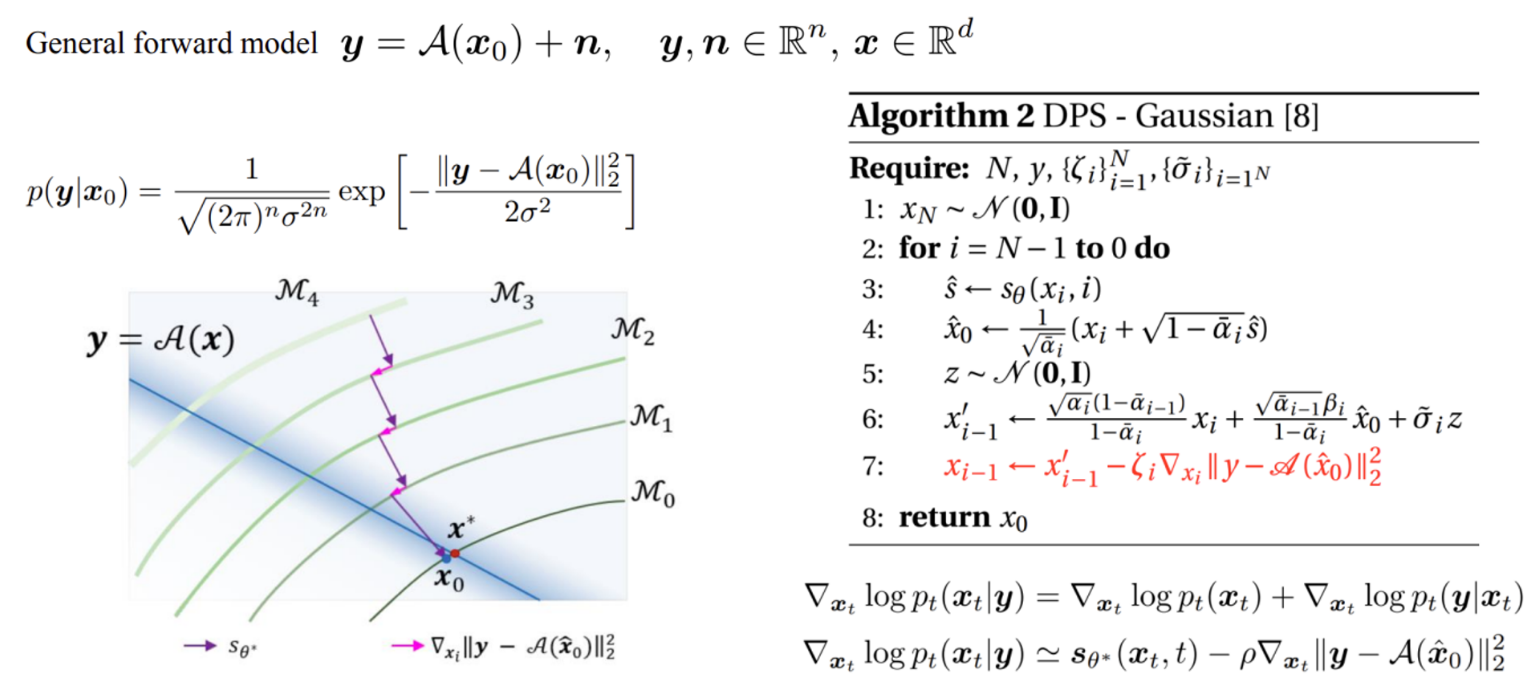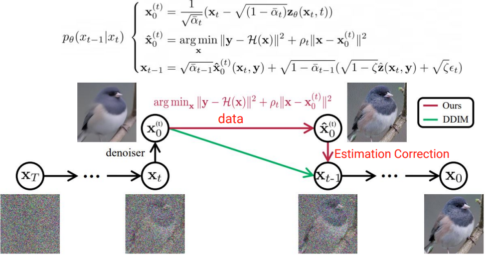 본 논문에서는 diffusion sampling framework안에서 data term과 prior term을 나누어 반복적으로 해결해나감으로써 Image Restoration을 수행하고자한다.