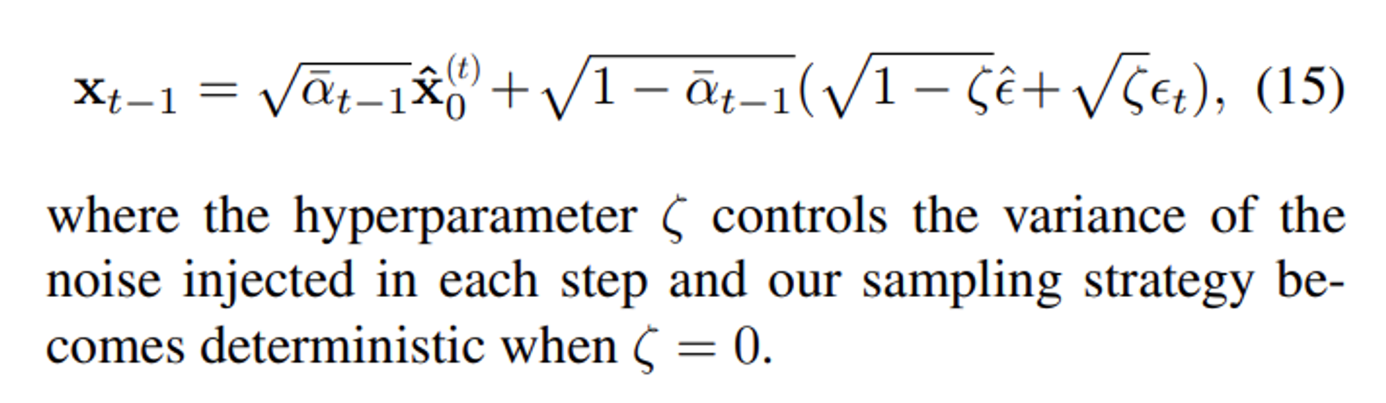 뒤에 마지막 noise term은 어처피 영향력이 미미할거라서 hyperparameter ζ를 도입해 두 노이즈의 balance를 맞춤. (=각 step에서 주입하는 노이즈의 양)