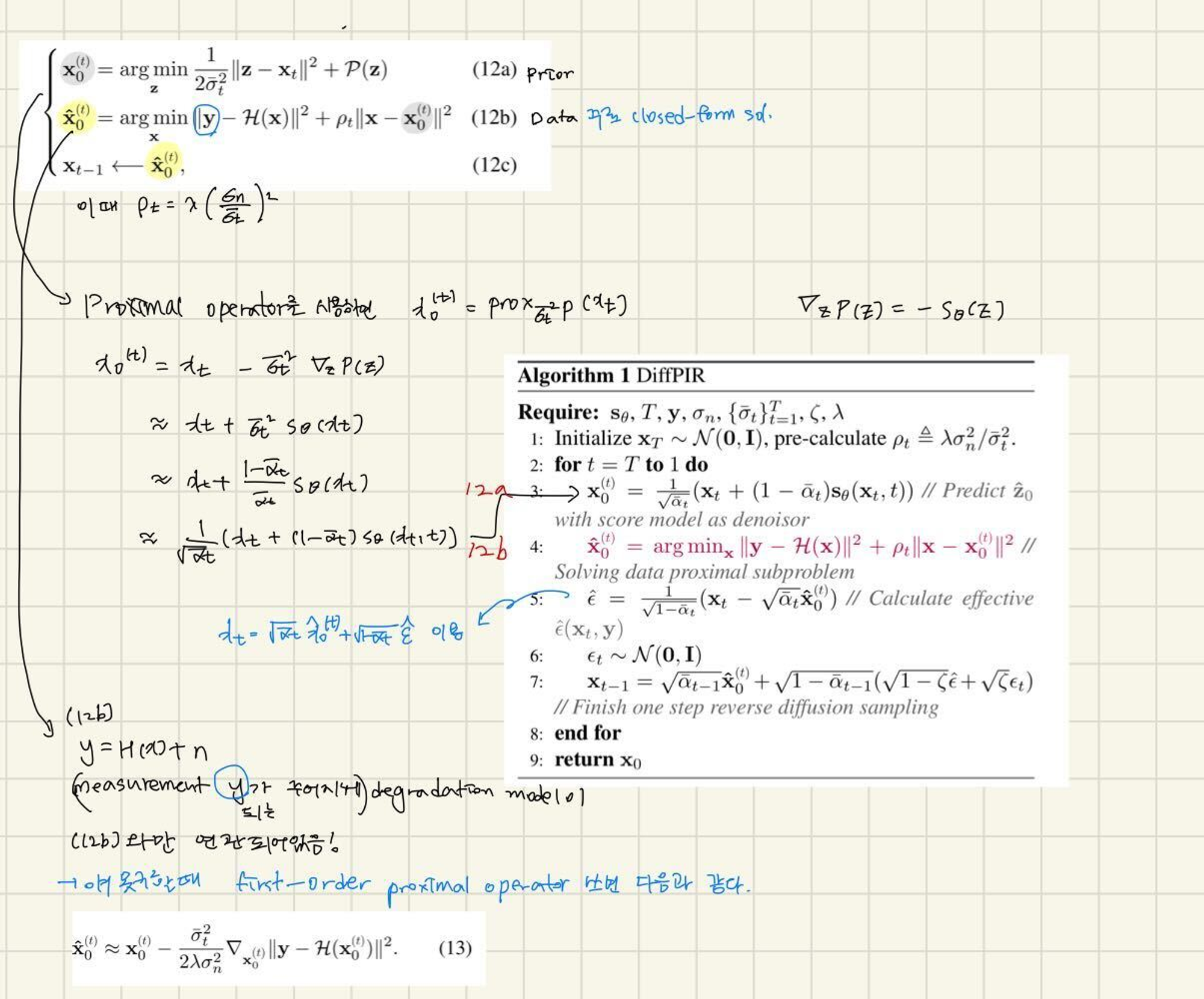 간단하게 HQS alg에서 deep prior denoiser를 diffusion model으로 생각해볼 수 있다.